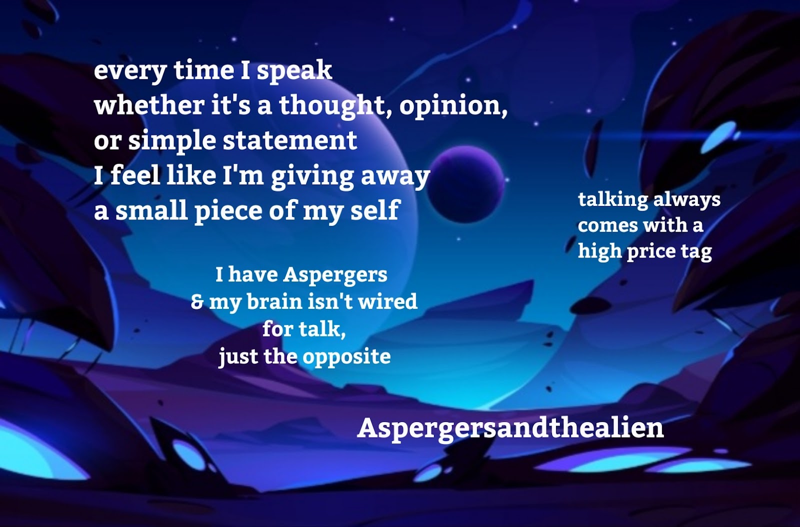 I've been struggling with the formatting on this blog, so I started a new one Aspergers and the Alien. Check me out there!!